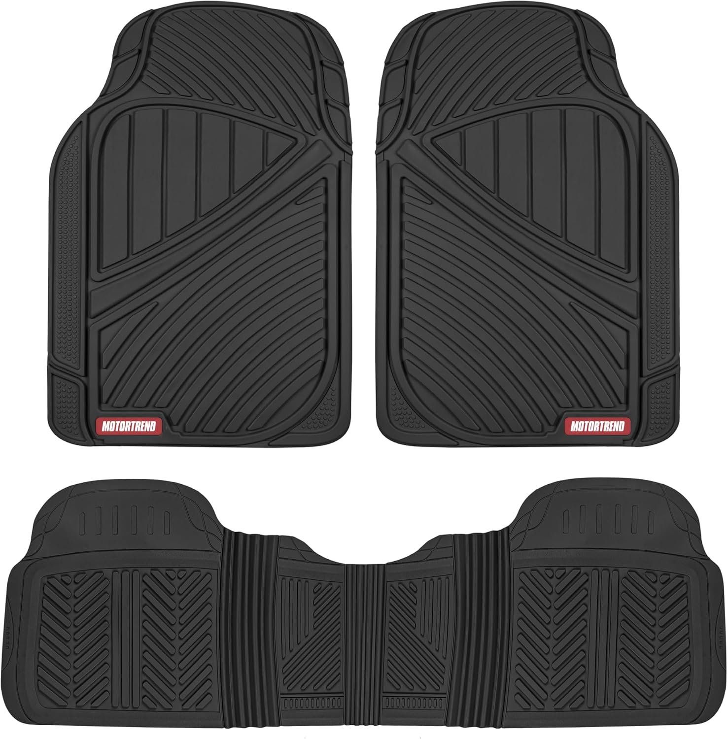 Motor Trend FlexTough Performance All Weather Rubber Car Floor Mats – 3 Piece Floor Mats Automotive Liners for Cars Truck SUV, Heavy-Duty Waterproof (Black)